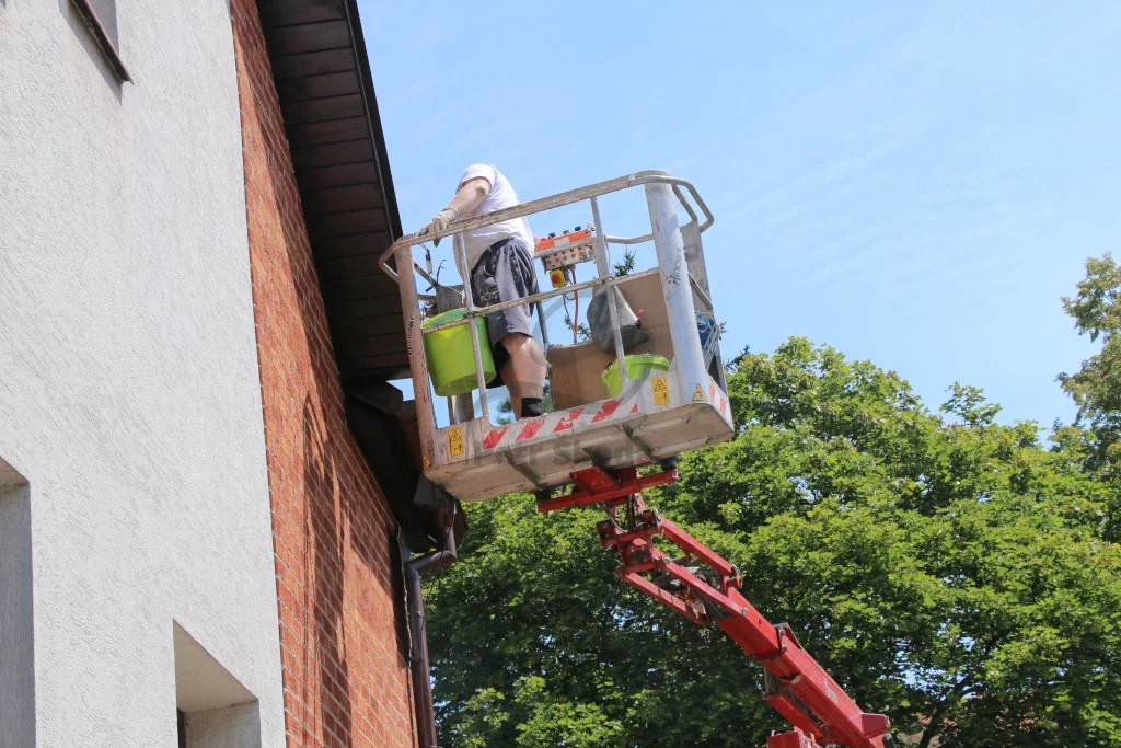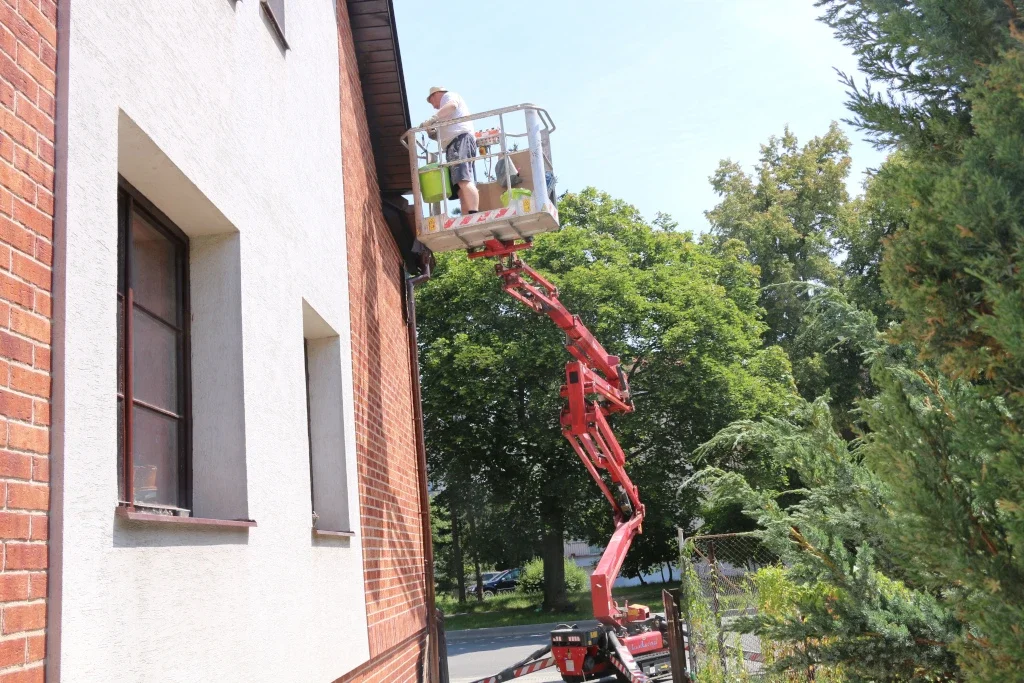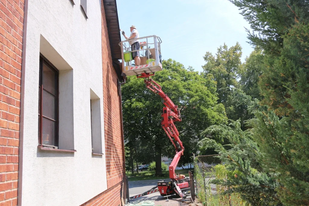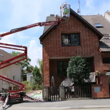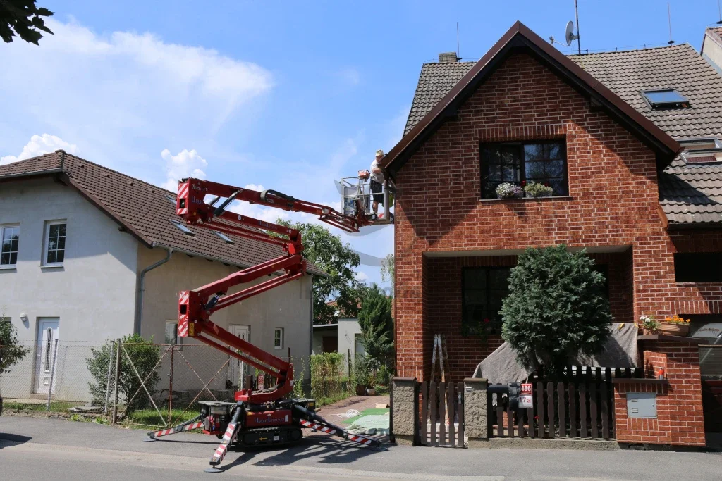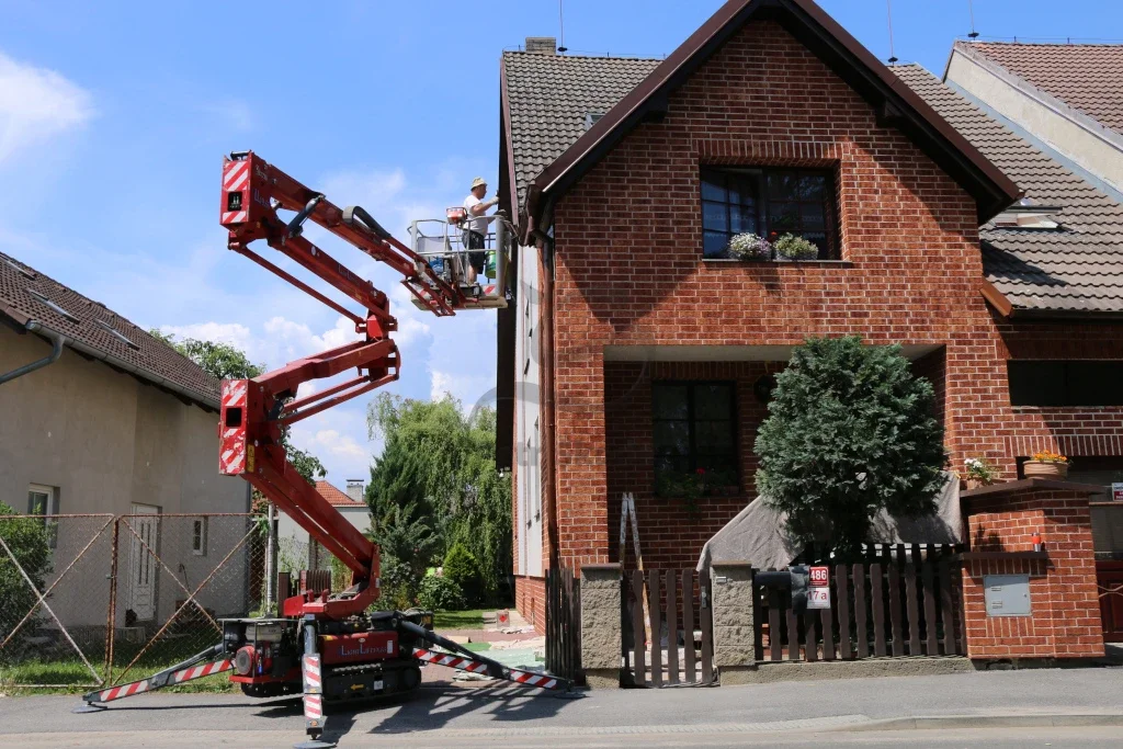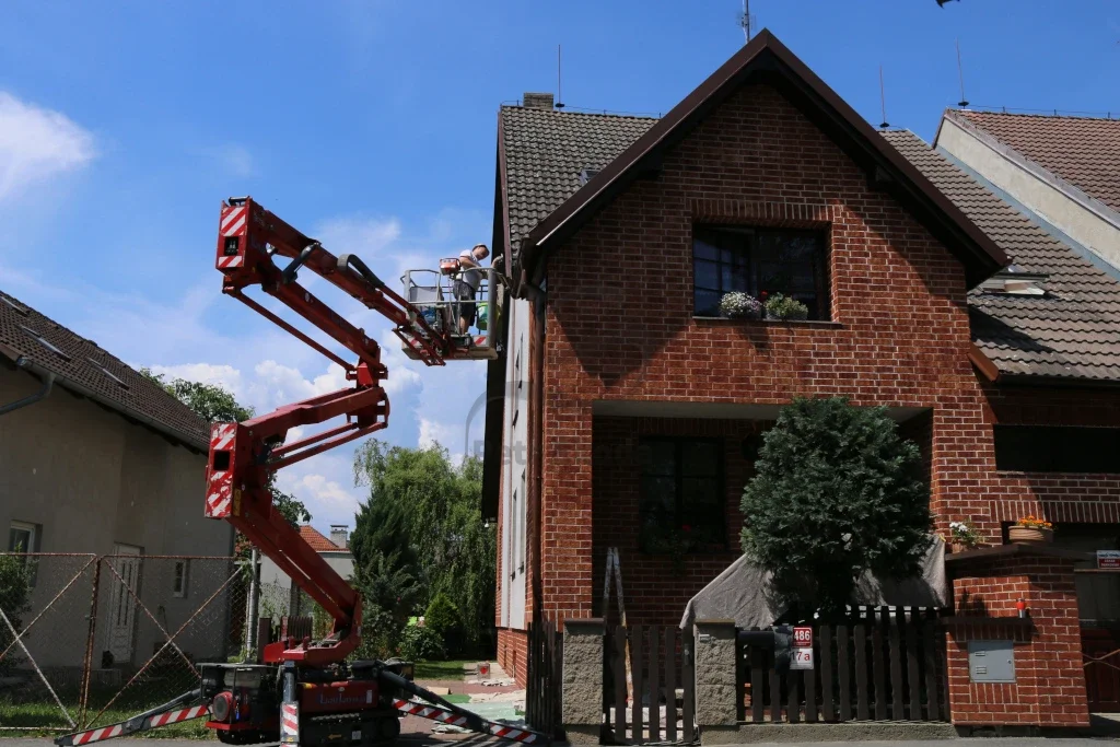 Vlastníme i výškový žebřík, podle obtížnosti dispozic máme i kloubový výškový žebřík. Při nátěrěch fasád spolupracujeme s odborníky, kteří mají dlouholeté zkušenosti s nátěry fasád i s různými problémy, které nastávají na fasádách. Máme na mysli různé znečištění, neustále objevující se mechy i řasy. Spolupracujeme s odborníky i v rámci prodeje fasádních barev, tak i prostředků na aplikaci fasádních barev. Pro všechny zákazníky, kteří chtějí mít nový kabát fasády, nabízíme 3 druhy fasádních barev. Jedná se o akrylátovou fasádní barvu, silikonovou i silikátovou fasádní barvu.